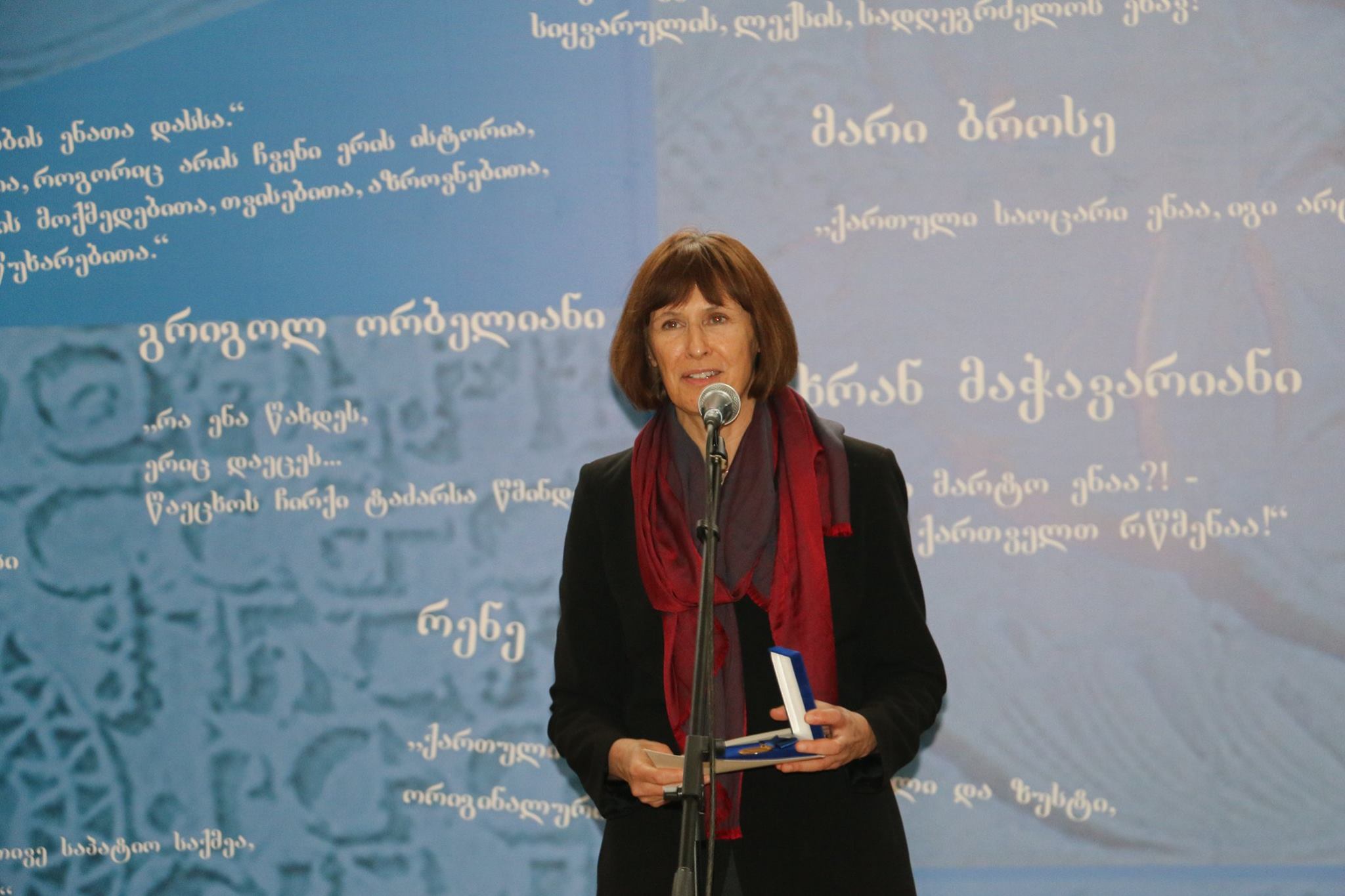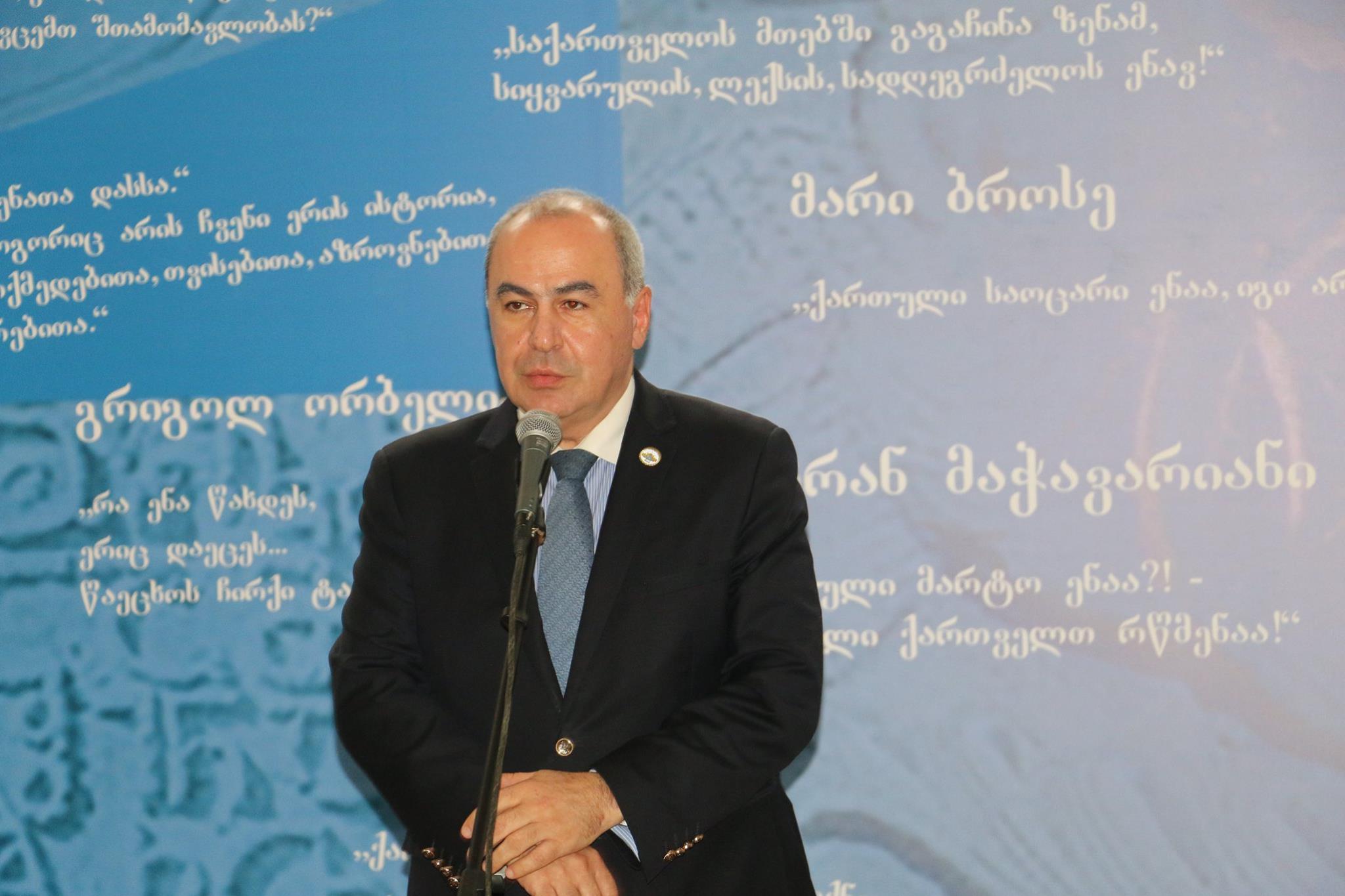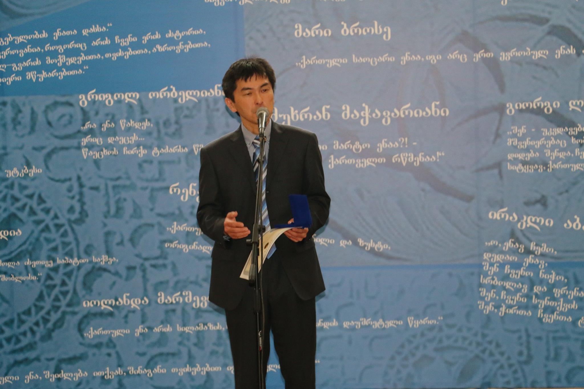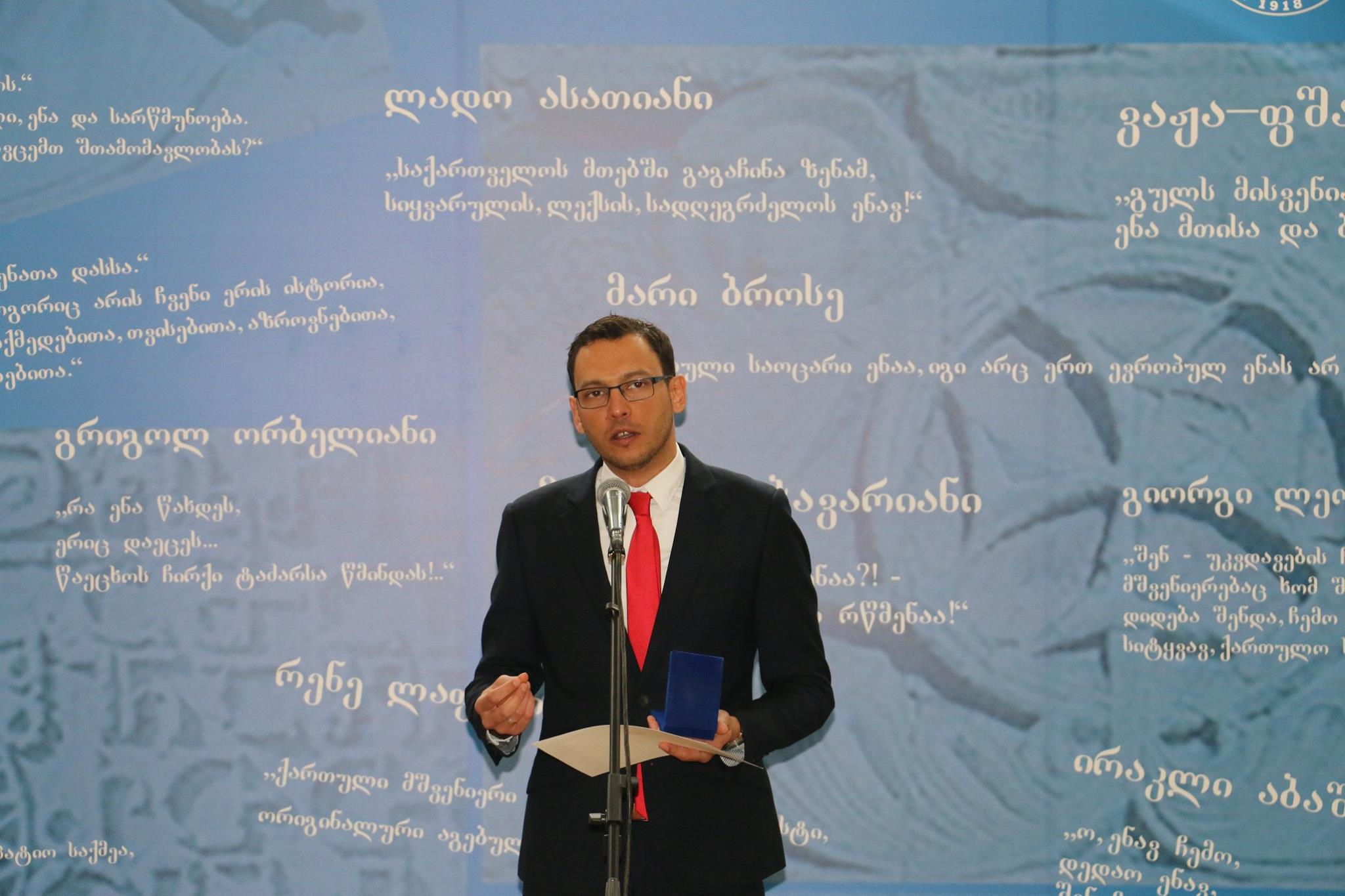 სახელმწიფო ენის დეპარტამენტის თავმჯდომარემ გიორგი ალიბეგაშვილმა თბილისის სახელმწიფო უნივერსიტეტში ქართული ენის კვირეულის დახურვაში მიიღო მონაწილეობა. გაიმართა დაჯილდოების ცერემონია და გამოფენა „ბურჯი ეროვნებისა“. გამოფენაზე წარმოდგენილი იყო უნიკალური ხელნაწერები, თსუ-ში დაცული დისერტაციები, უცხოელ ქართველოლოგთა ნაშრომები,  ქართული ენის შესწავლასთან დაკავშირებული წიგნები და სხვა მასალა. გამორჩეული ლიტერატურული ქართული ენით მეტყველებისათვის თბილისის სახელმწიფო უნივერსიტეტის ჯილდო გადაეცათ დიპლომატიური კორპუსის წარმომადგენლებს: ამერიკის შეერთებული შტატების საელჩოს მისიის ხელმძღვანელის მოადგილეს ელიზაბეტ რუდს; დიდი ბრიტანეთისა და ჩრდილოეთ ირლანდიის გაერთიანებული სამეფოს საგანგებო და სრულუფლებიან ელჩს საქართველოში ჯასტინ მაკკენზი სმიტს. უნგრელ ელეს არპადს; უცხოელ ქართველოლოგს - იაპონიის საელჩოს კულტურის ყოფილ ატაშეს, ენათმეცნიერს, ტოკიოს უცხო ენების უნივერსიტეტის პროფესორს იასუჰირო კოჯიმას. ჯილდო გადაეცათ აგრეთვე:საზოგადო მოღვაწეს, მწერალ კოტე ჯანდიერს;ჟურნალისტ თამარ ცაგარეიშვილს;ღვაწლმოსილ მეცნიერს მერი ნიკოლაიშვილს;ახალგაზრდა მეცნიერებს: ნიკო ქელბაქიანს და გიორგი ჯღარკავას; მთარგმნელს ანი კოპალიანს.
