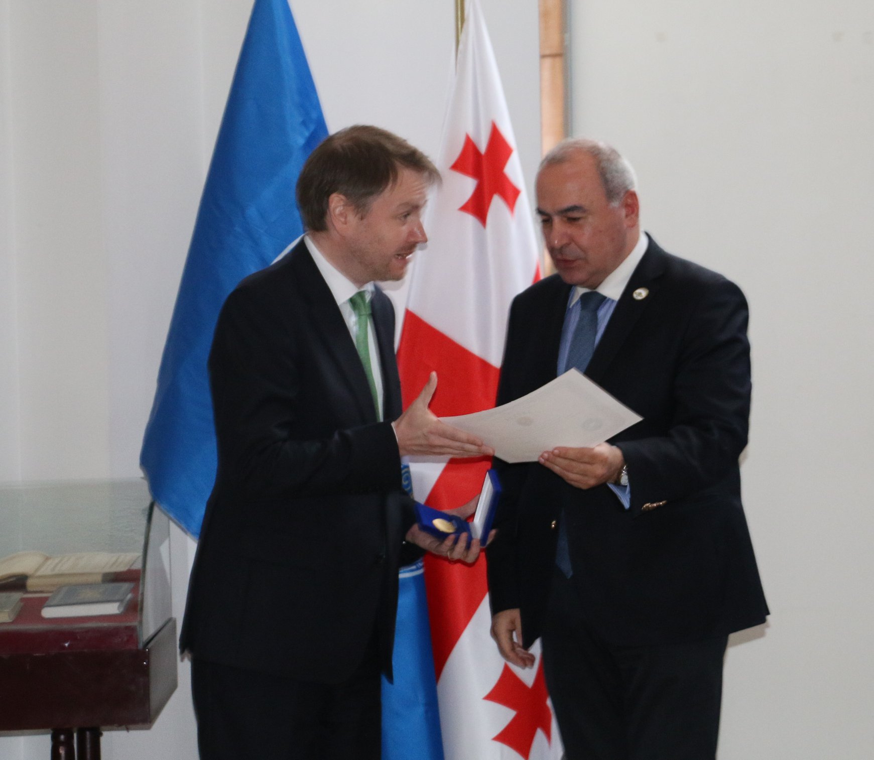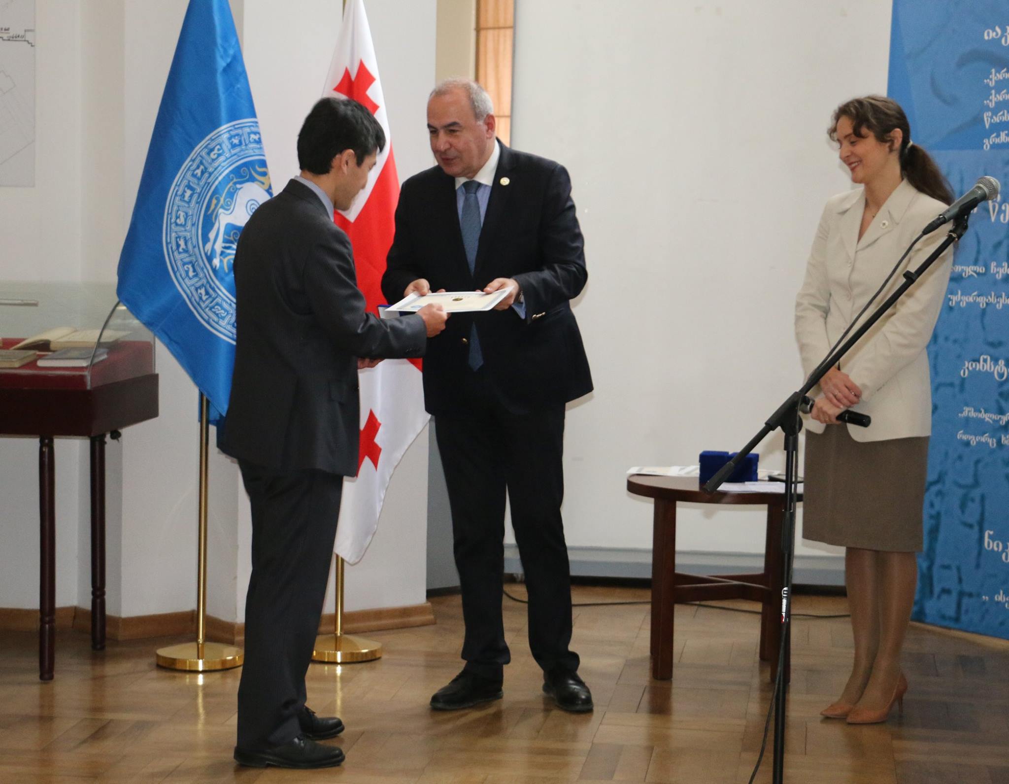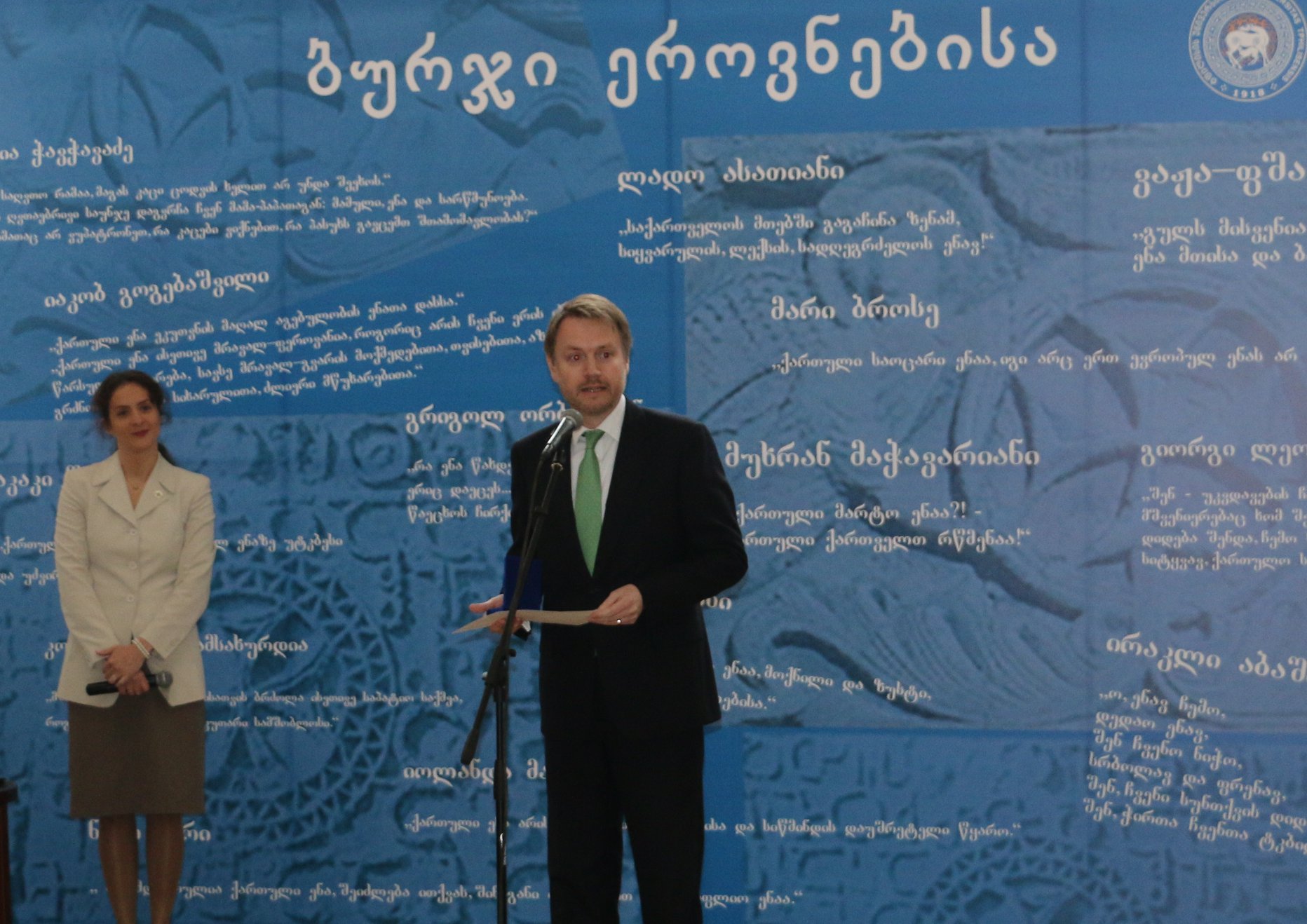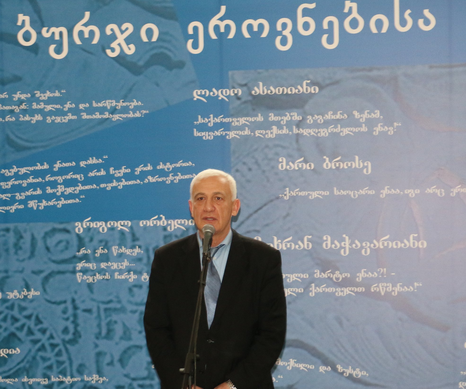 სახელმწიფო ენის დეპარტამენტის თავმჯდომარემ გიორგი ალიბეგაშვილმა თბილისის სახელმწიფო უნივერსიტეტში ქართული ენის კვირეულის დახურვაში მიიღო მონაწილეობა. გაიმართა დაჯილდოების ცერემონია და გამოფენა „ბურჯი ეროვნებისა“. გამოფენაზე წარმოდგენილი იყო უნიკალური ხელნაწერები, თსუ-ში დაცული დისერტაციები, უცხოელ ქართველოლოგთა ნაშრომები,  ქართული ენის შესწავლასთან დაკავშირებული წიგნები და სხვა მასალა. გამორჩეული ლიტერატურული ქართული ენით მეტყველებისათვის თბილისის სახელმწიფო უნივერსიტეტის ჯილდო გადაეცათ დიპლომატიური კორპუსის წარმომადგენლებს: ამერიკის შეერთებული შტატების საელჩოს მისიის ხელმძღვანელის მოადგილეს ელიზაბეტ რუდს; დიდი ბრიტანეთისა და ჩრდილოეთ ირლანდიის გაერთიანებული სამეფოს საგანგებო და სრულუფლებიან ელჩს საქართველოში ჯასტინ მაკკენზი სმიტს. უნგრელ ელეს არპადს; უცხოელ ქართველოლოგს - იაპონიის საელჩოს კულტურის ყოფილ ატაშეს, ენათმეცნიერს, ტოკიოს უცხო ენების უნივერსიტეტის პროფესორს იასუჰირო კოჯიმას. ჯილდო გადაეცათ აგრეთვე:საზოგადო მოღვაწეს, მწერალ კოტე ჯანდიერს;ჟურნალისტ თამარ ცაგარეიშვილს;ღვაწლმოსილ მეცნიერს მერი ნიკოლაიშვილს;ახალგაზრდა მეცნიერებს: ნიკო ქელბაქიანს და გიორგი ჯღარკავას; მთარგმნელს ანი კოპალიანს.