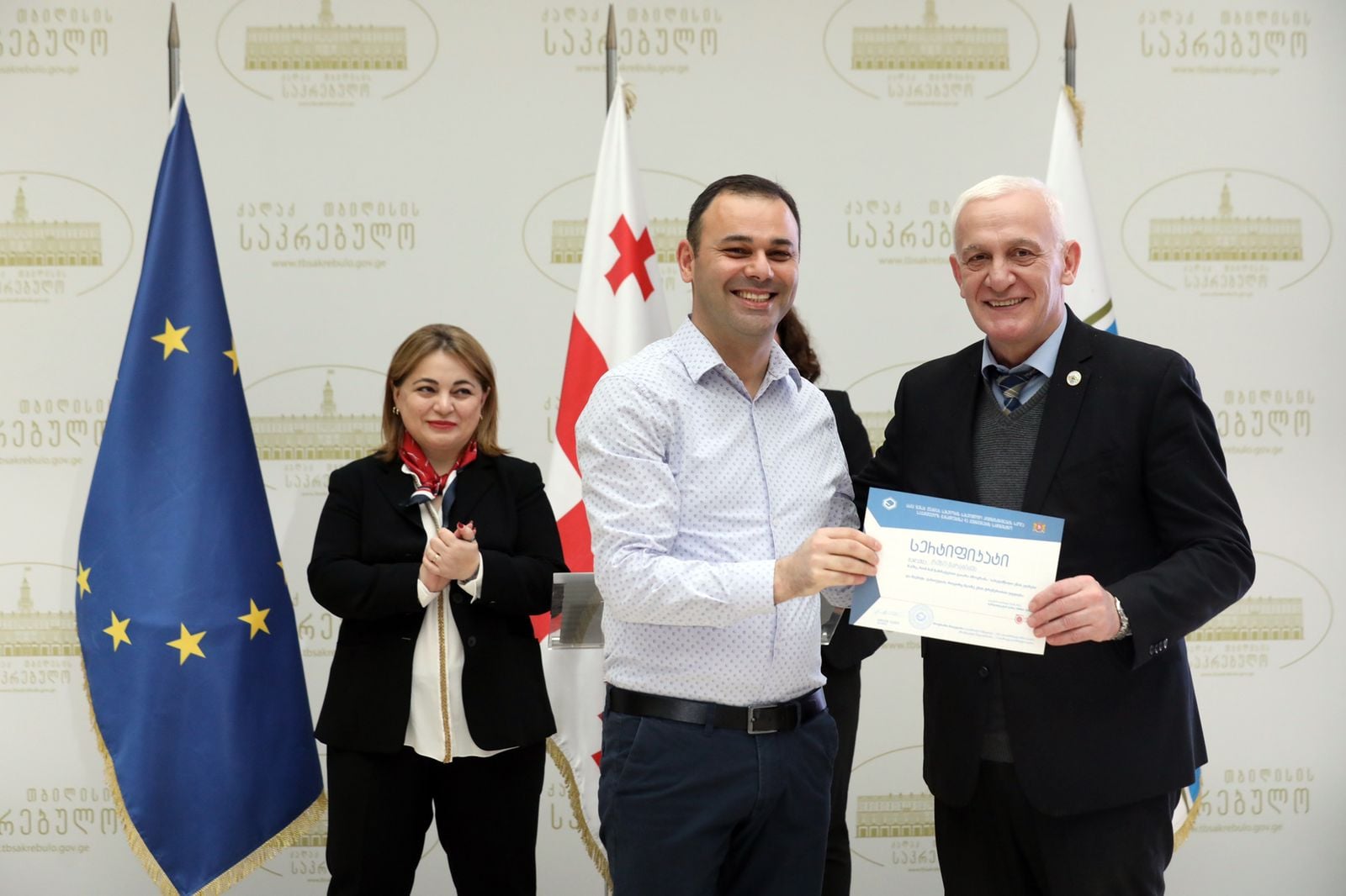 სახელმწიფო ენის სწავლებისა და ინტეგრაციის საკითხებში ტრენერთა მომზადება/გადამზადების სასერტიფიკატო პროგრამის – „სახელმწიფო ენის ელჩები“ ფარგლებში წინასწარი რეგისტრაციისა და კონკურსის გავლის შედეგად თბილისიდან, ქვემო ქართლის, სამცხე-ჯავახეთისა და კახეთის რეგიონებიდან შეირჩა 20 ტრენერი, რომლებმაც 6 თვიანი, როგორც თეორიული, ასევე, პრაქტიკული გადამზადება გაიარეს სახელმწიფო ენის სწავლებისა და ინტეგრაციის საკითხებში.