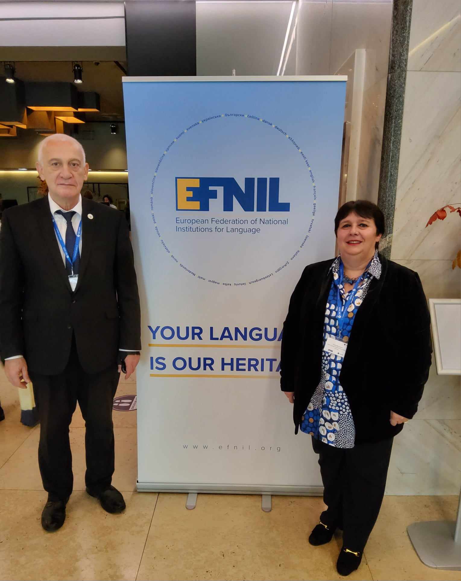სლოვენიის დედაქალაქ ლიუბლიანაში 2023 წლის 11-13 ოქტომბერს გაიმართა ენათა ეროვნული ინსტიტუციების მე-20 ყოველწლიური კონფერენცია. კონფერენციაზე იმყოფებოდნენ სახელმწიფო ენის დეპარტამენტის თავმჯდომარე გიორგი ალიბეგაშვილი და სამეცნიერო-საგანმანათლებლო პროგრამების სამსახურის უფროსი თინათინ ბოლქვაძე. სახელმწიფო ენის დეპარტამენტი კონფერენციაზე მიწეული იყო ასოციაციის (EFNIL) ასოცირებული წევრის სტატუსით.
