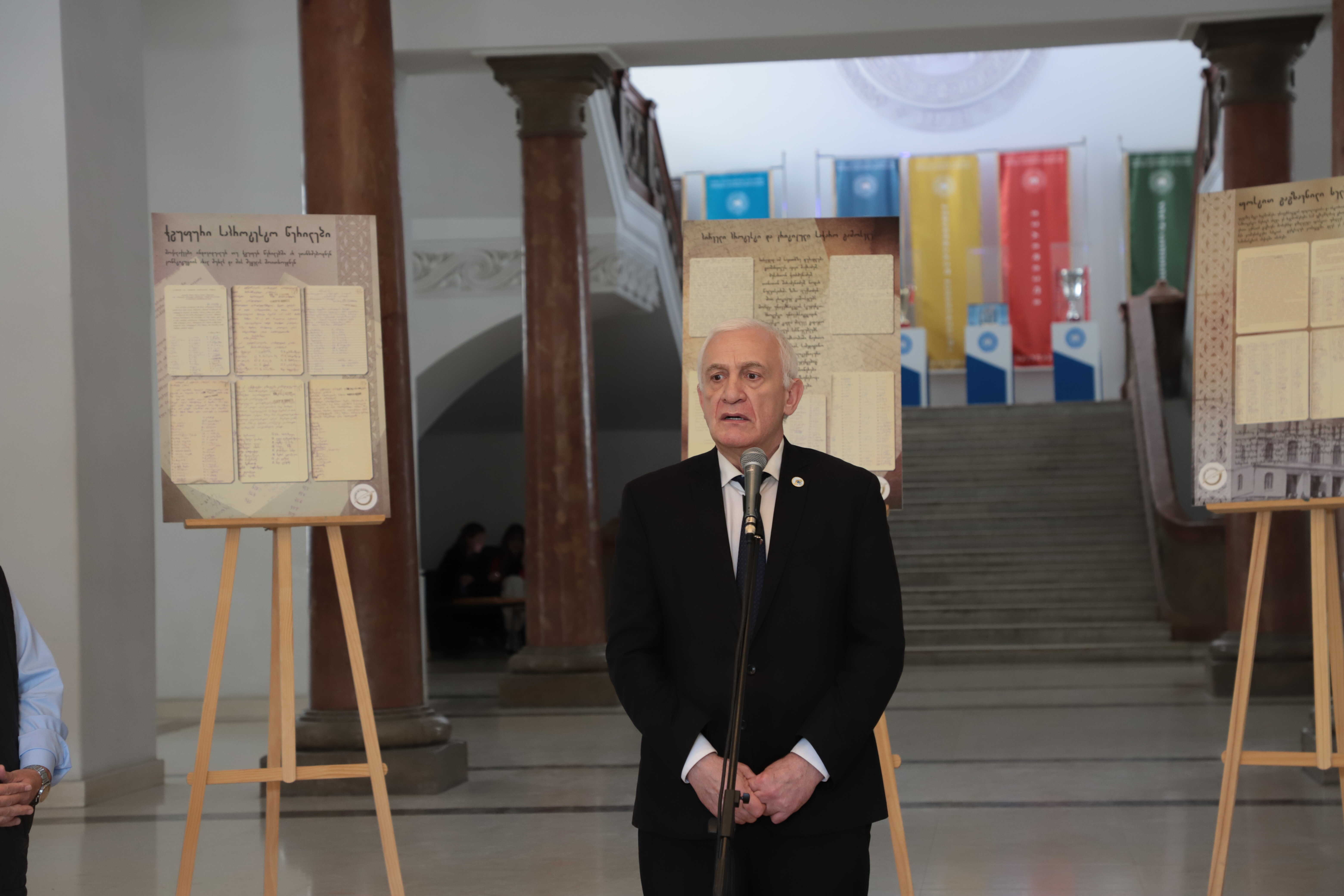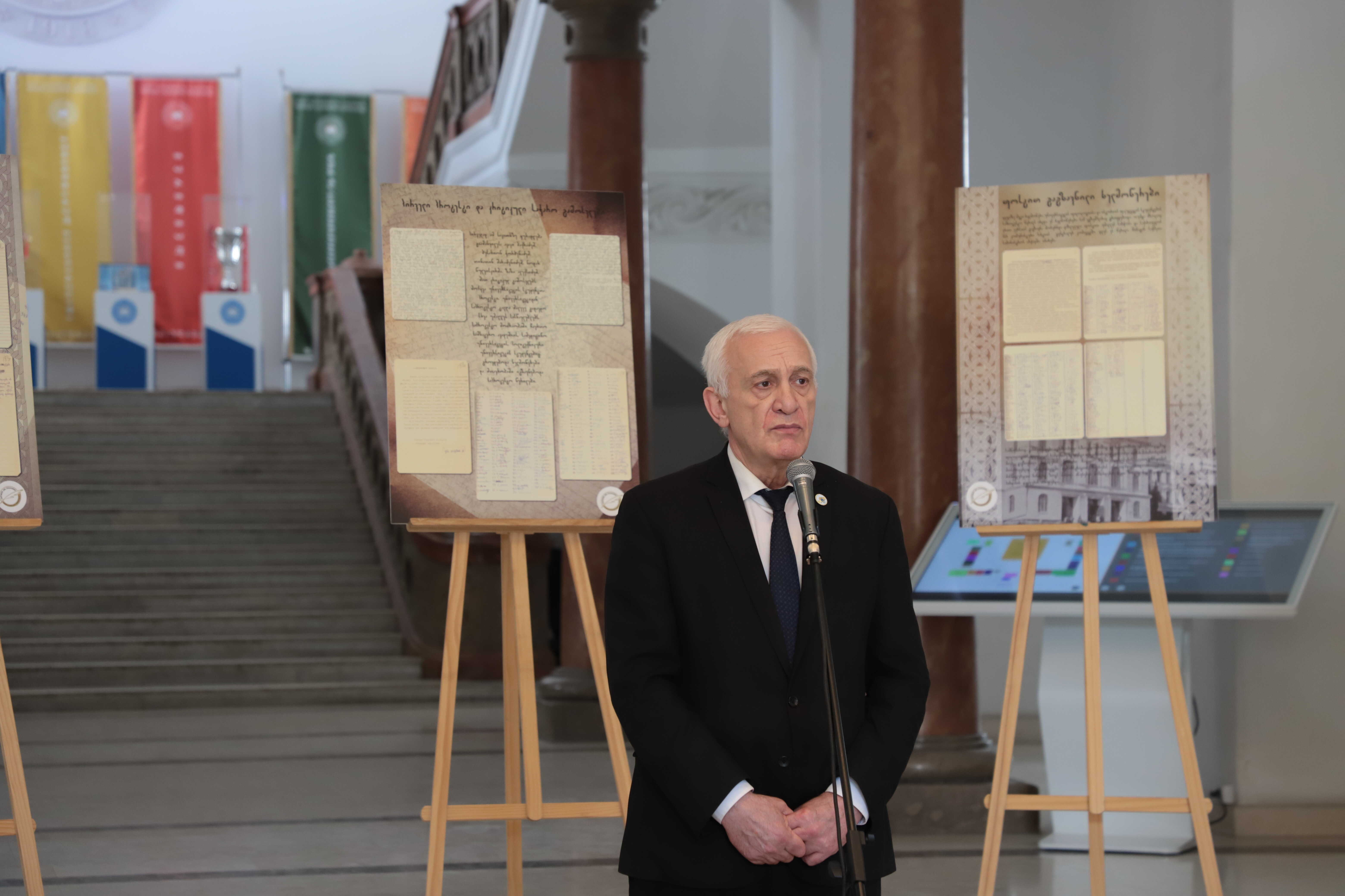 თბილისის სახელმწიფო უნივერსიტეტის რექტორმა, აკადემიკოსმა ჯაბა სამუშიამ გამოფენის გახსნაზე 14 აპრილის მოვლენებზე ისაუბრა და ხაზი გაუსვა თბილისის სახელმწიფო უნივერსიტეტის სტუდენტთა და პროფესორ-მასწავლებელთა მედგარ ბრძოლას ქართულის, როგორც  სახელმწიფო ენის სტატუსის დასაცავად.